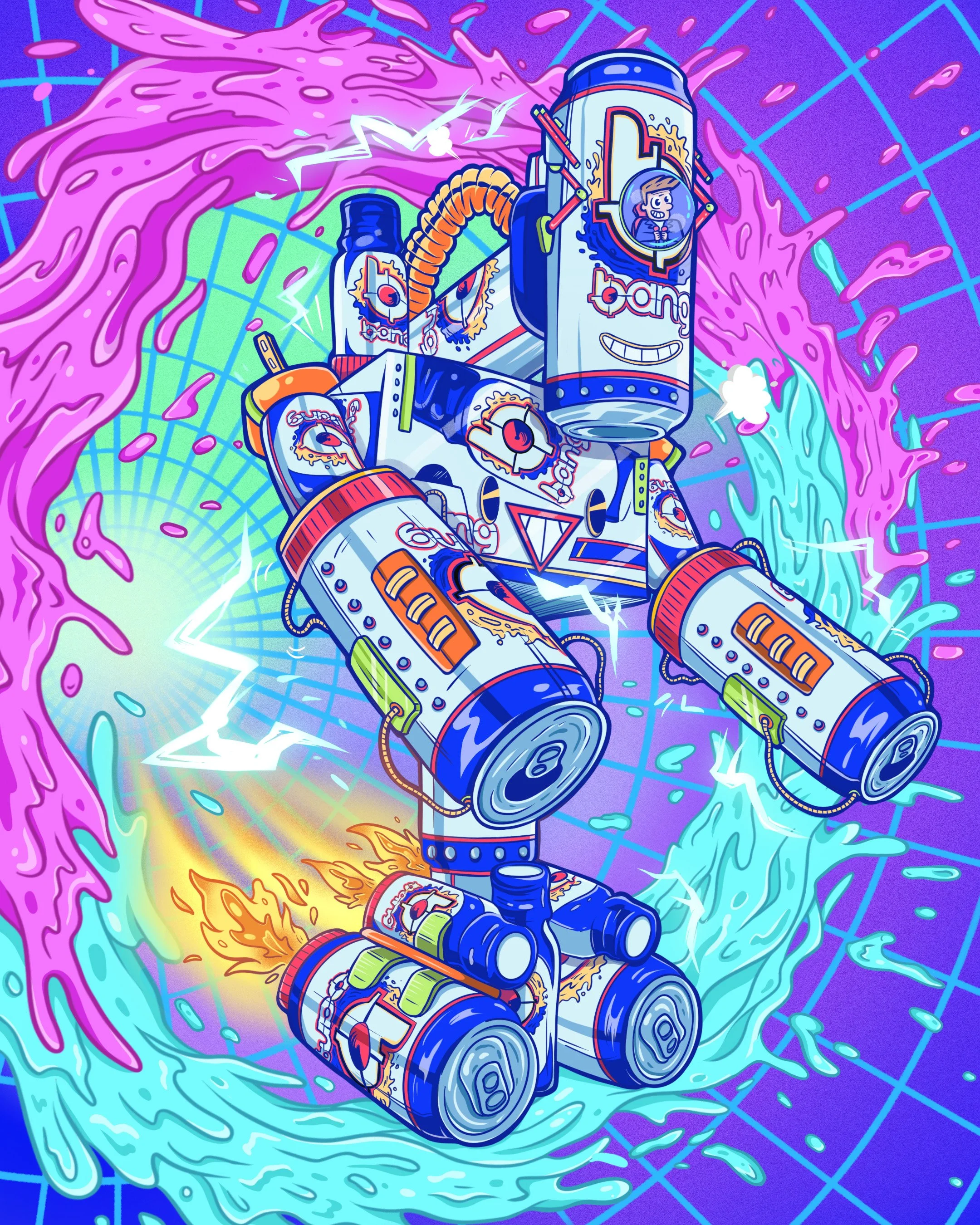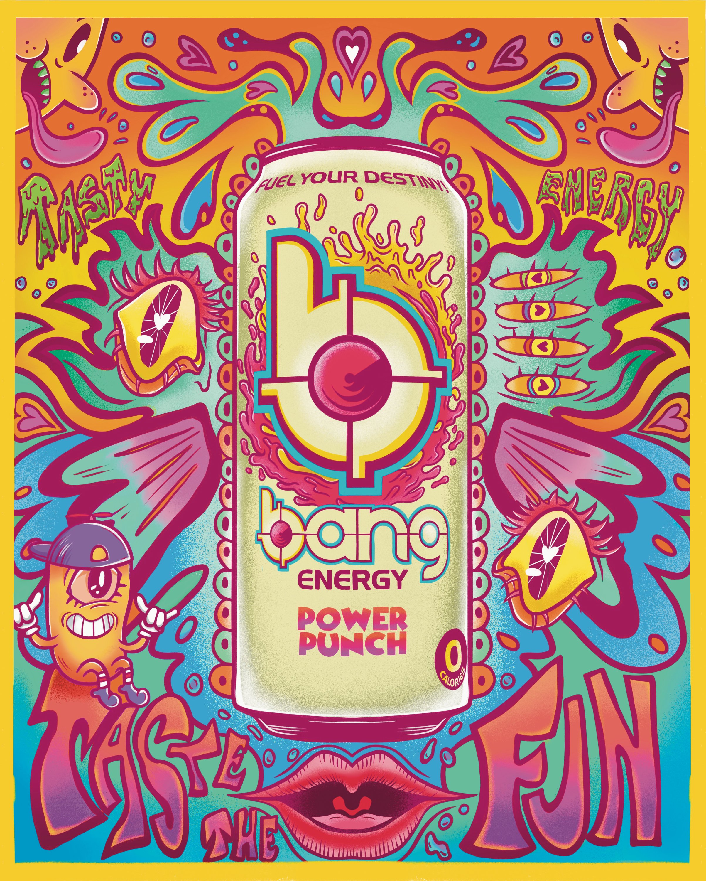 As an Advertising Graphic Designer at Bang Energy, I helped bring the brand’s fun, bold, and high-energy personality to life through colorful visual campaigns for new flavor launches across social media, merch, and the website. I led illustration for two major packaging lines and their supporting marketing assets, leaning into vibrant color, playful concepts, and strong visuals to stand out on shelf and online. I also created over 12 custom avatar characters for Bang’s Ultra App, using expressive design and storytelling to make the brand feel energetic, dynamic, and instantly recognizable.